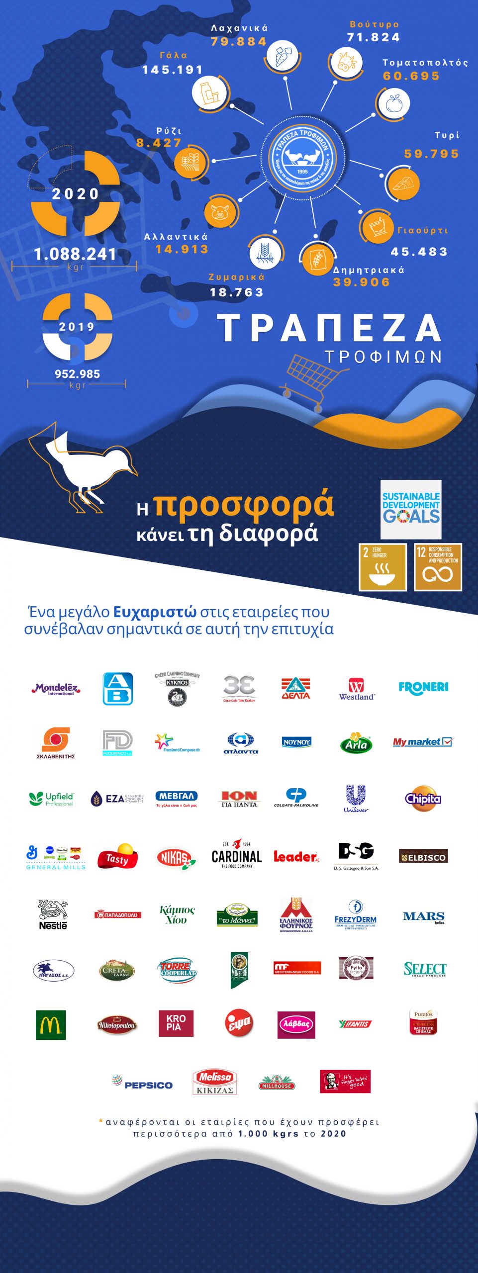 Σε μια χρονιά που είναι για όλους πολύ δύσκολη, καταφέραμε μέσα σε 8 μήνες να σώσουμε και να προσφέρουμε περισσότερα τρόφιμα από την περυσινή χρονιά! Ευχαριστούμε πολύ όλες τις εταιρίες τροφίμων για την υποστήριξη, κι όλα τα συσσίτια και ιδρύματα με τα οποία συνεργαζόμαστε για την αυτοθυσία τους.