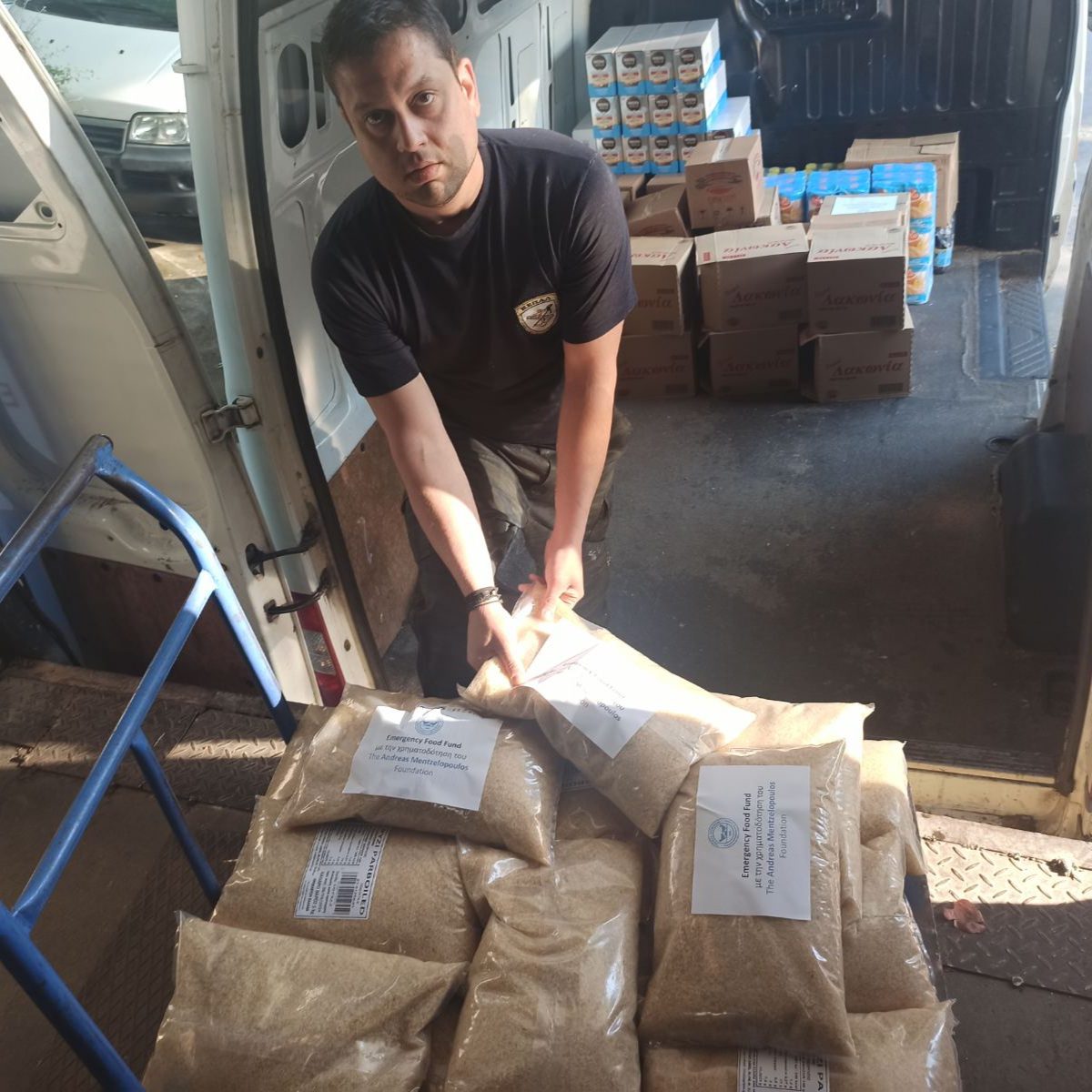 with the funding of the “Andreas Mendzelopoulos” Foundation, we offered the residents of of the fire-stricken villages of Gortynia and Ancient Olympia standardized food for the preparation of 16,000 portions of food, which will cover the needs of 250 people. See also here: Food for fire victims.