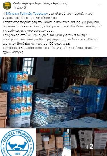 with the funding of the “Andreas Mendzelopoulos” Foundation, we offered the residents of of the fire-stricken villages of Gortynia and Ancient Olympia standardized food for the preparation of 16,000 portions of food, which will cover the needs of 250 people. See also here: Food for fire victims.