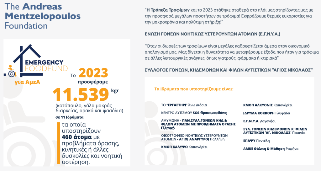 With the support of the Andreas Mendzelopoulos Foundation, the Emergency Food Fund programme for people with disabilities is being implemented for the whole of 2023.
