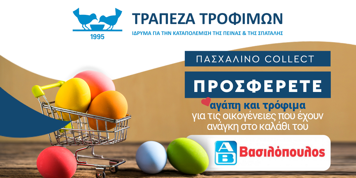 Για να ενισχύσουμε όλες αυτές τις κοινωνικές ομάδες, η πασχαλινή μας δράση «Collect» τον Απρίλη θα γίνει σε συνεργασία με επιλεγμένα καταστήματα του ΑΒ Βασιλόπουλος και θα ξεκινήσει από τις 13 Απριλίου.