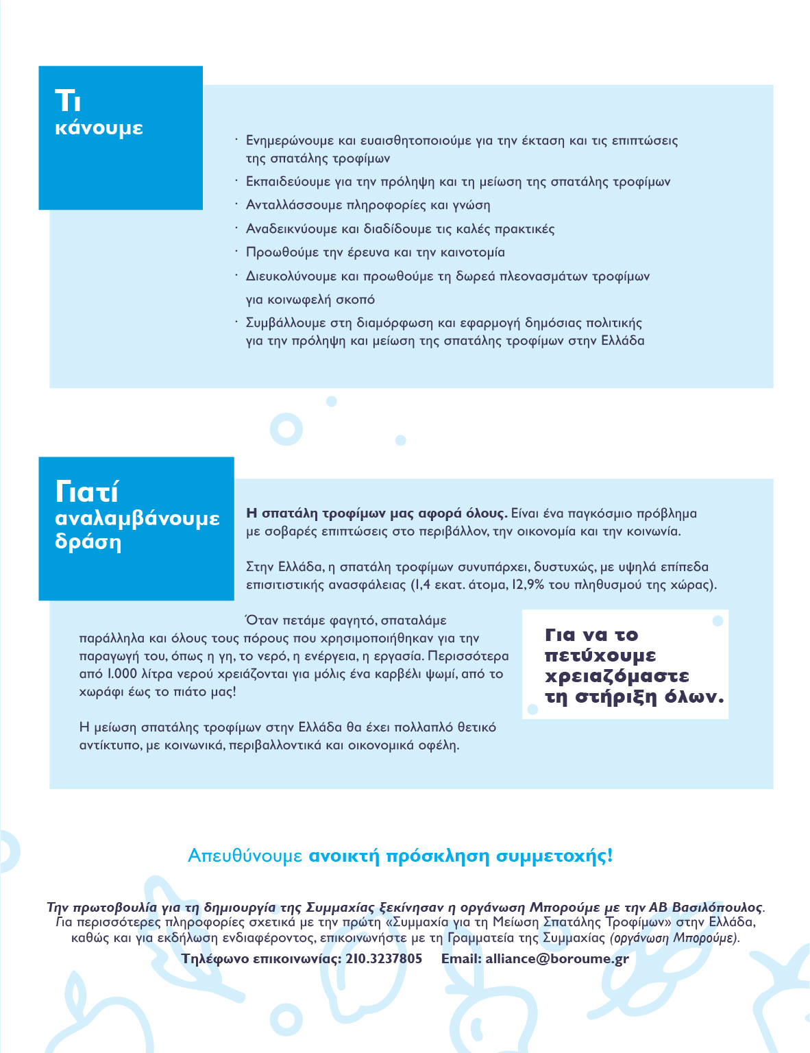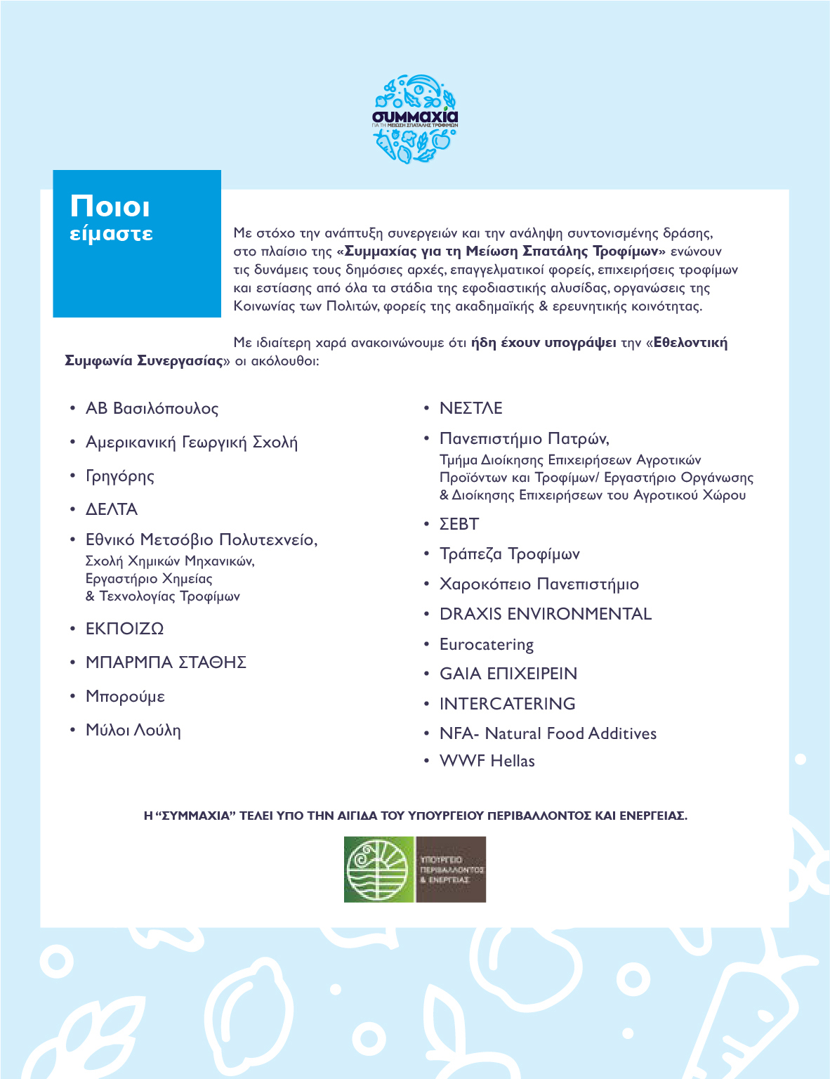 NEWS Συμμαχία για την σπατάλη τροφίμων Updated on 5 Ιουλίου, 2024 by Foodbank Support Συμμαχία για την σπατάλη τροφίμων Μια πρωτοβουλία του ‘Μπορούμε’ που -για την ώρα- αριθμεί 20 μέλη! Εταιρίες τροφίμων, τα αρμόδια Υπουργεία, οργανώσεις, πανεπιστήμια εργαζόμαστε για να περιορίσουμε την σπατάλη! Συμμετέχει και η Τράπεζα Τροφίμων!